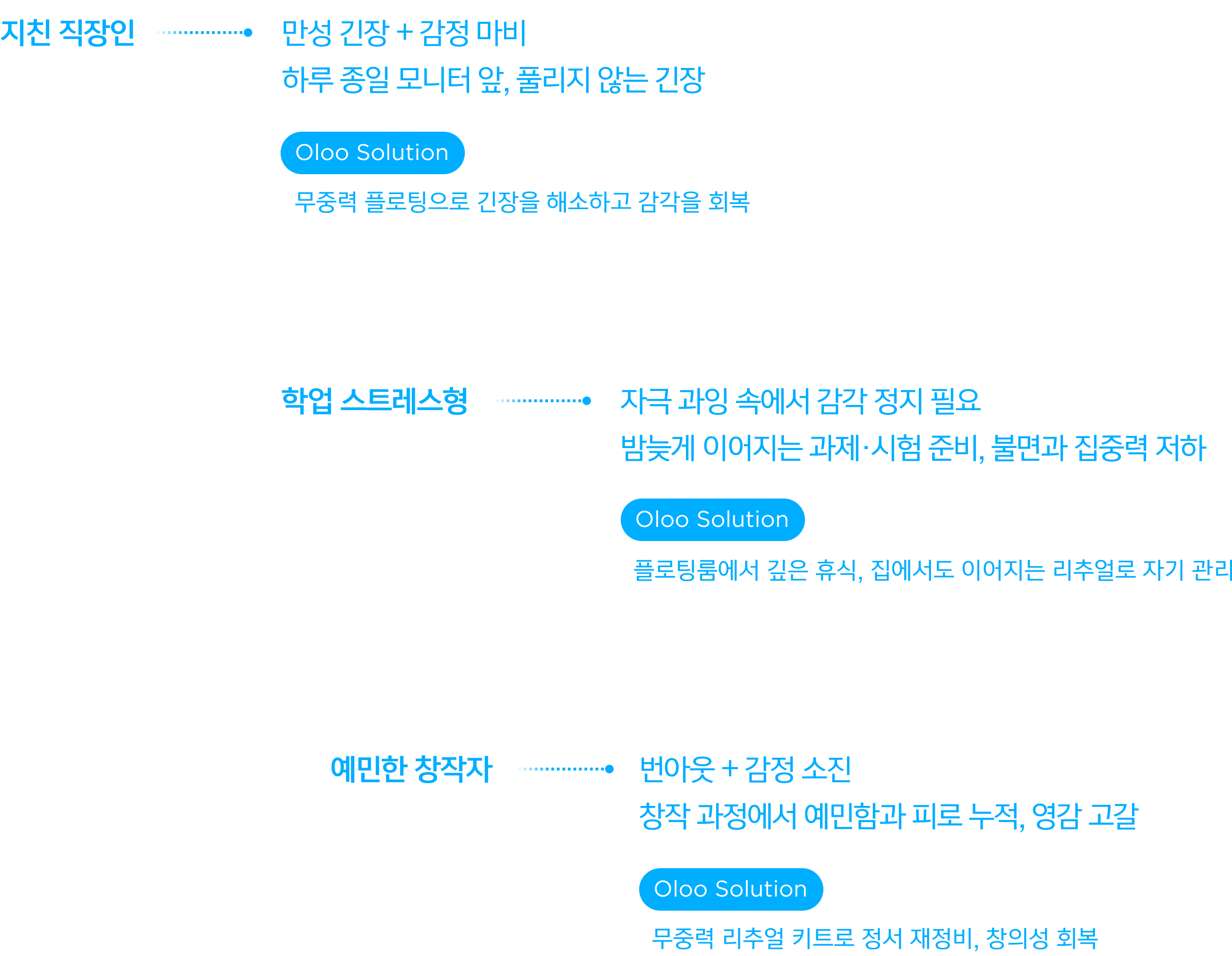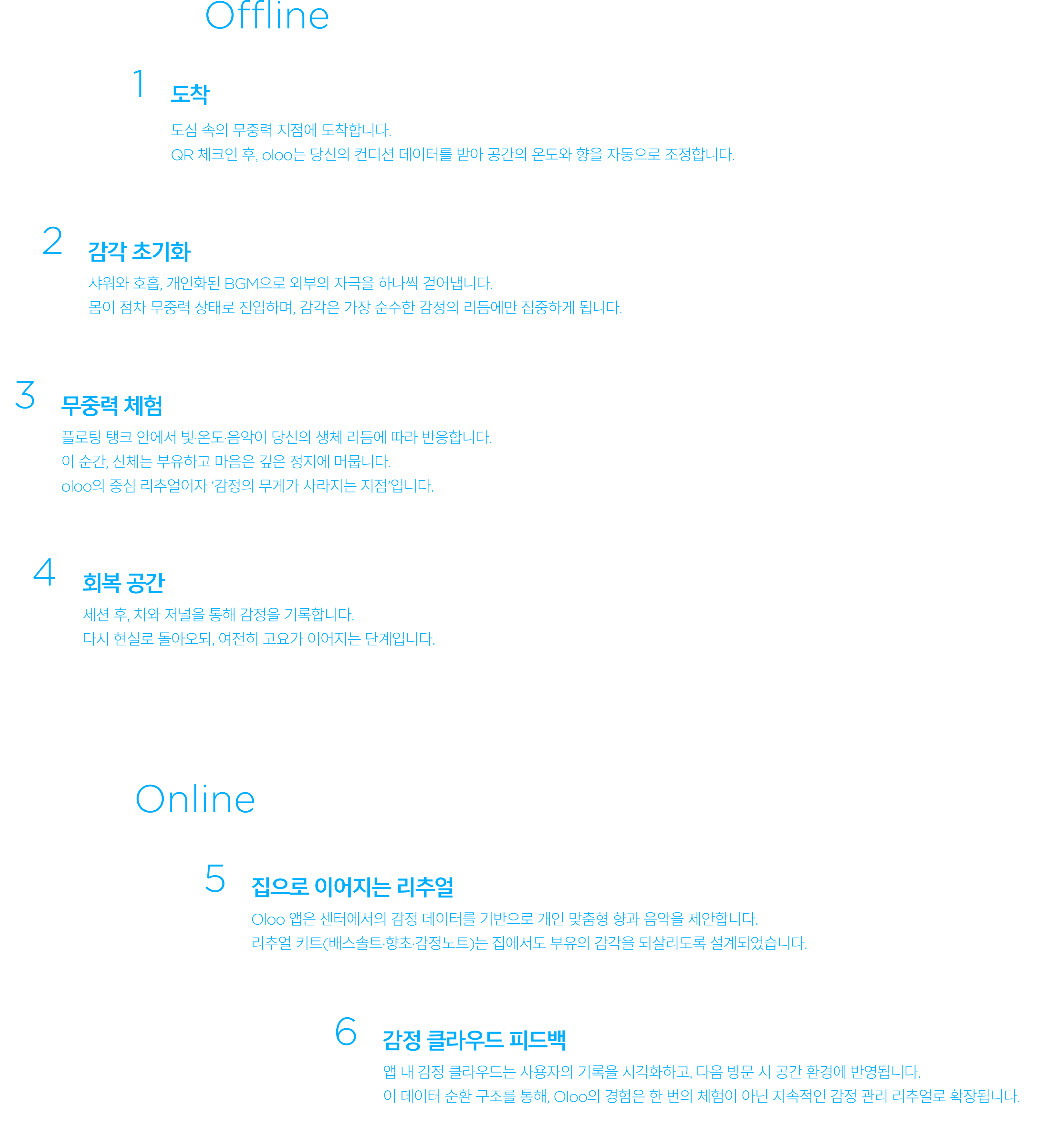 오프라인 올루 센터에서 플로팅 테라피를 직접 즐길 수 있습니다.